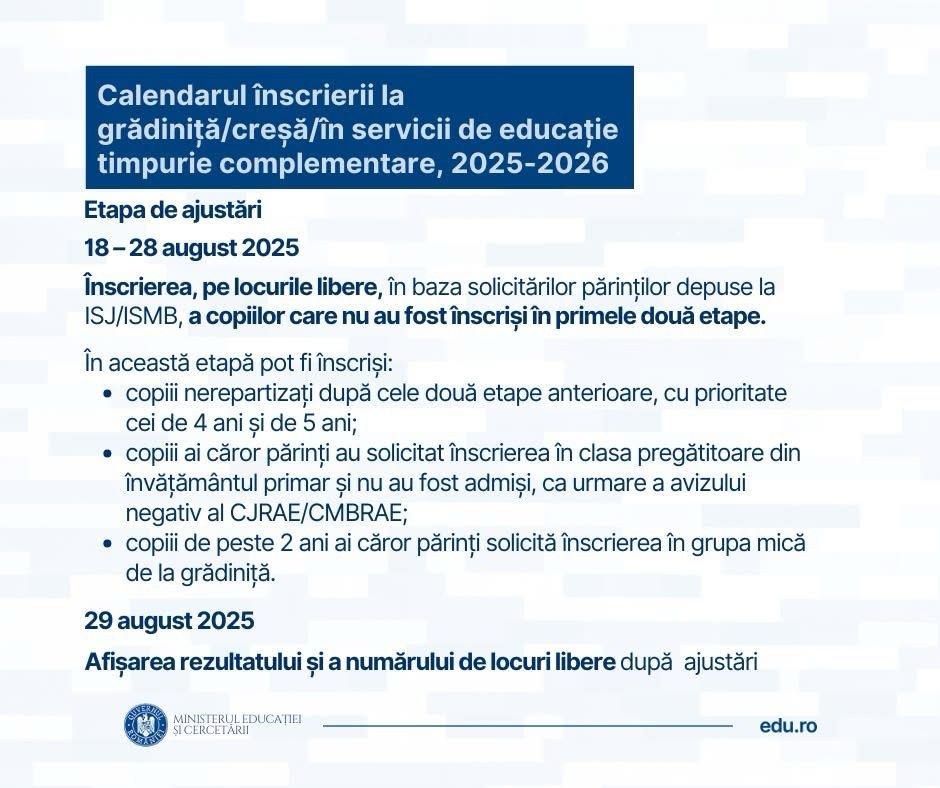 ORDIN nr. 3.436 din 28 februarie 2025privind aprobarea Calendarului înscrierii copiilor antepreșcolari și preșcolari în anul școlar 2025-2026 în unități de învățământ preuniversitar cu personalitate […]